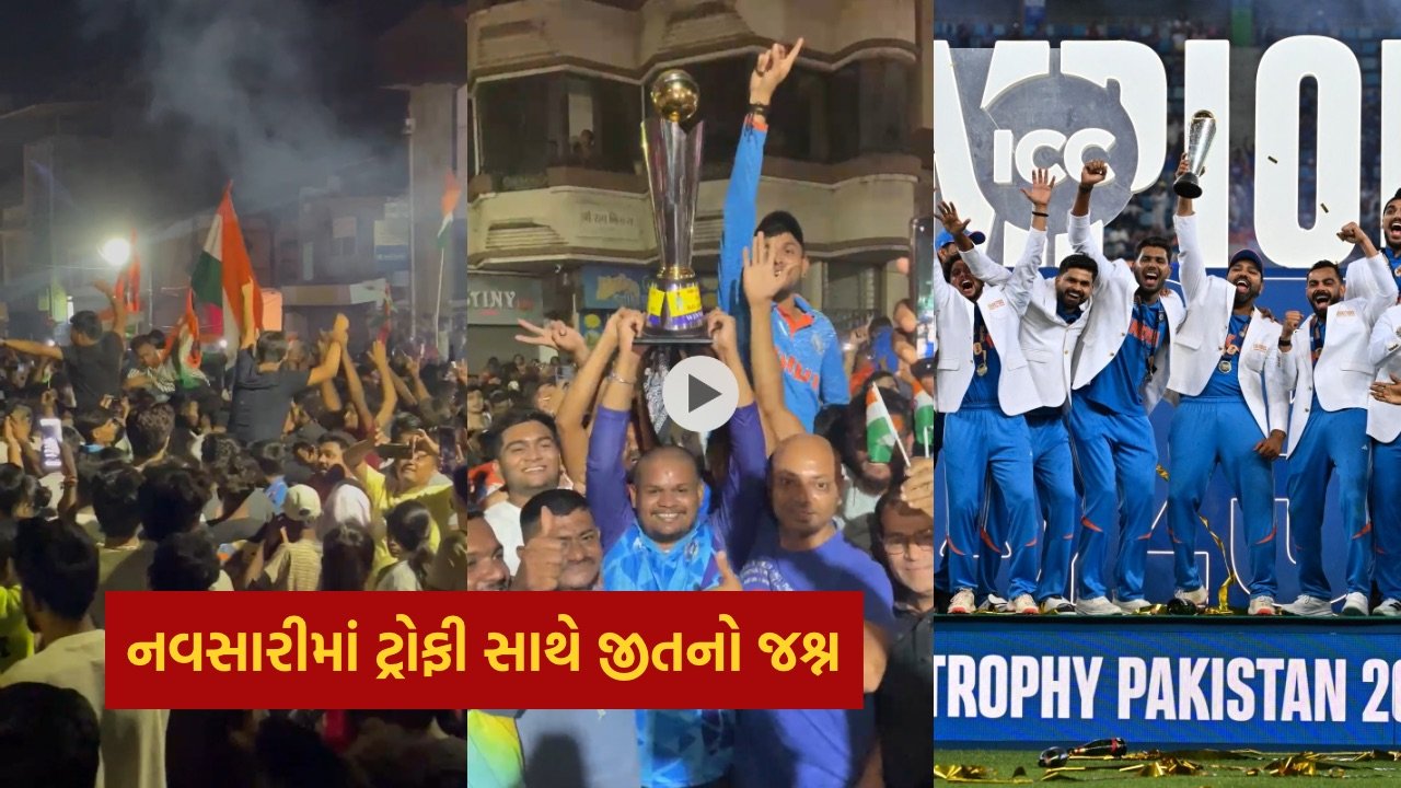 રવિવારે આઈસીસી ચેમ્પિયન્સ ટ્રોફીની ફાઇનલમાં ન્યુઝીલેન્ડને હરાવીને ભારતીય ટીમે ત્રીજી વખત ટાઇટલ જીત્યું. દુબઈ ઈન્ટરનેશનલ ક્રિકેટ સ્ટેડિયમમાં રમાયેલી મેચમાં ભારતે ન્યૂઝીલેન્ડને 4 વિકેટે હરાવ્યું. આ સાથે, ભારતે સાતમી વખત ICC ટુર્નામેન્ટ જીતી. ICC ચેમ્પિયન્સ ટ્રોફીની ફાઇનલમાં, ન્યુઝીલેન્ડે પ્રથમ બેટિંગ કરતા 50 ઓવરમાં 7 વિકેટ ગુમાવીને 251 રન બનાવ્યા; જવાબમાં, ભારતે 6 બોલ બાકી રહેતા ટાઇટલ મેચ જીતી લીધી. ભારતે 49 ઓવરમાં 6 વિકેટ ગુમાવીને 254 રન બનાવ્યા. ભારત માટે રવિન્દ્ર જાડેજાએ વિજયી ચાર ફટકાર્યા. ન્યુઝીલેન્ડની ટીમ ફરી એકવાર ફાઇનલમાં હારી ગઈ છે. નવસારરીમા આ ક્ષણ મની ઉજવણી ધામધૂમ થી કરવામાં આવી.